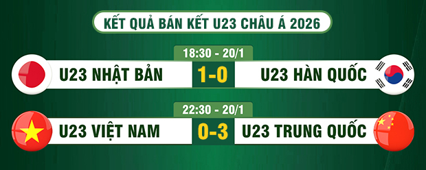 Chiến thắng này giúp U23 Trung Quốc giành vé vào chung kết U23 châu Á 2026, nơi họ sẽ đối đầu U23 Nhật Bản vào ngày 24/1. Trong khi đó, U23 Việt Nam sẽ tranh hạng ba với U23 Hàn Quốc vào ngày 23/1.